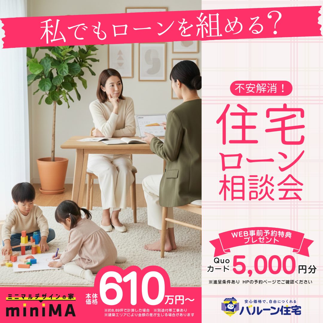 「家を建てたいけど、ローンが通るか不安…」「頭金が少なくても大丈夫?」そんなお悩みをお持ちの方に向けて、住宅ローンの個別相談会を開催します。