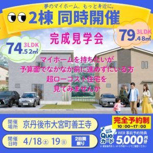 2026年4月18日(土)・19日(日)の2日間、京丹後市大宮町にて「2棟同時完成見学会」 を開催します!